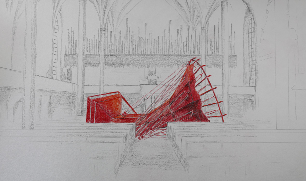 Nach längerer Vorbereitung und der Pandemieunterbrechung wird eine neue Arbeit in der Martinskirche Kassel präsentiert. Nach der Anfrage, hatte ich bereits 2019 ein Konzept für den Ort entwickelt, das von der „Kulturplattform St. Martin“ nun mit einem umfangreichen Beiprogramm ausgestattet wurde, und am Sonntag eröffnet wird.